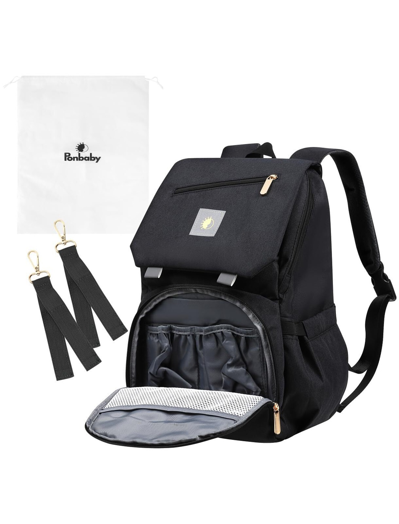 Ponbaby マザーズリュック プレミアモデル (大容量 / 16のポケット) マザーズバッグ リュック 軽量 多機能 USBポート付き 出産祝い プレゼント