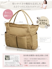 【サイズ】縦:35cm 横:52cm 厚さ:16cm 重さ470g 【整理収納アドバイザー監修】整理整頓のプロである整理収納アドバイザーの監修を受け、高機能な帆布トートバッグに仕上げております。