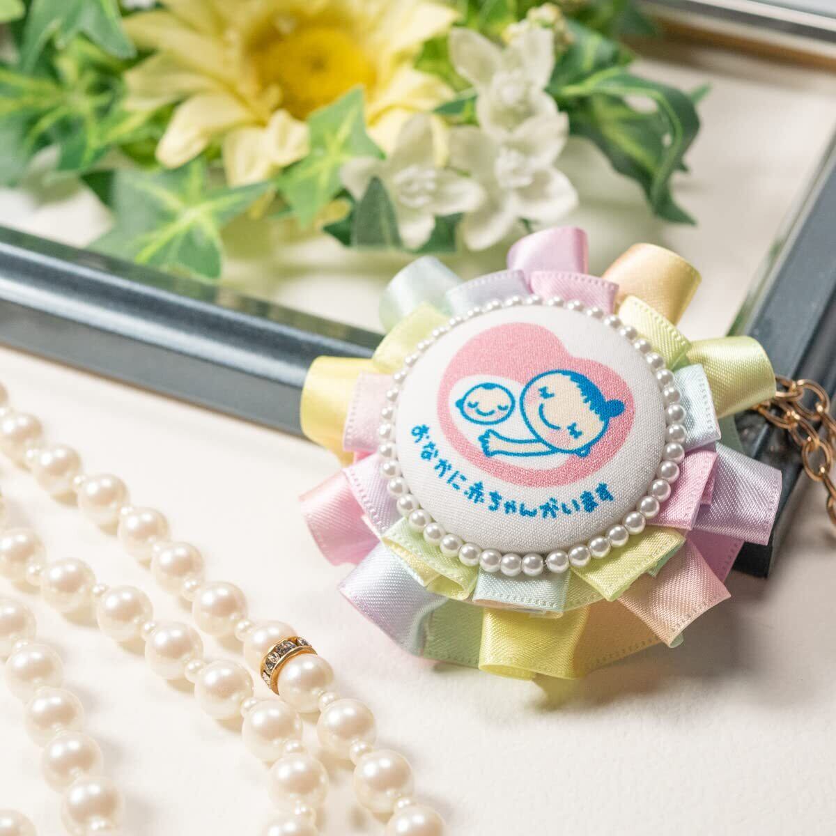 【cocomam】マタニティロゼット◇ダブルフリルキーホルダー フリルが可愛い ママになるみなさまへ ギフト プレゼント お祝い 日本製 マタニティマーク(レインボー)