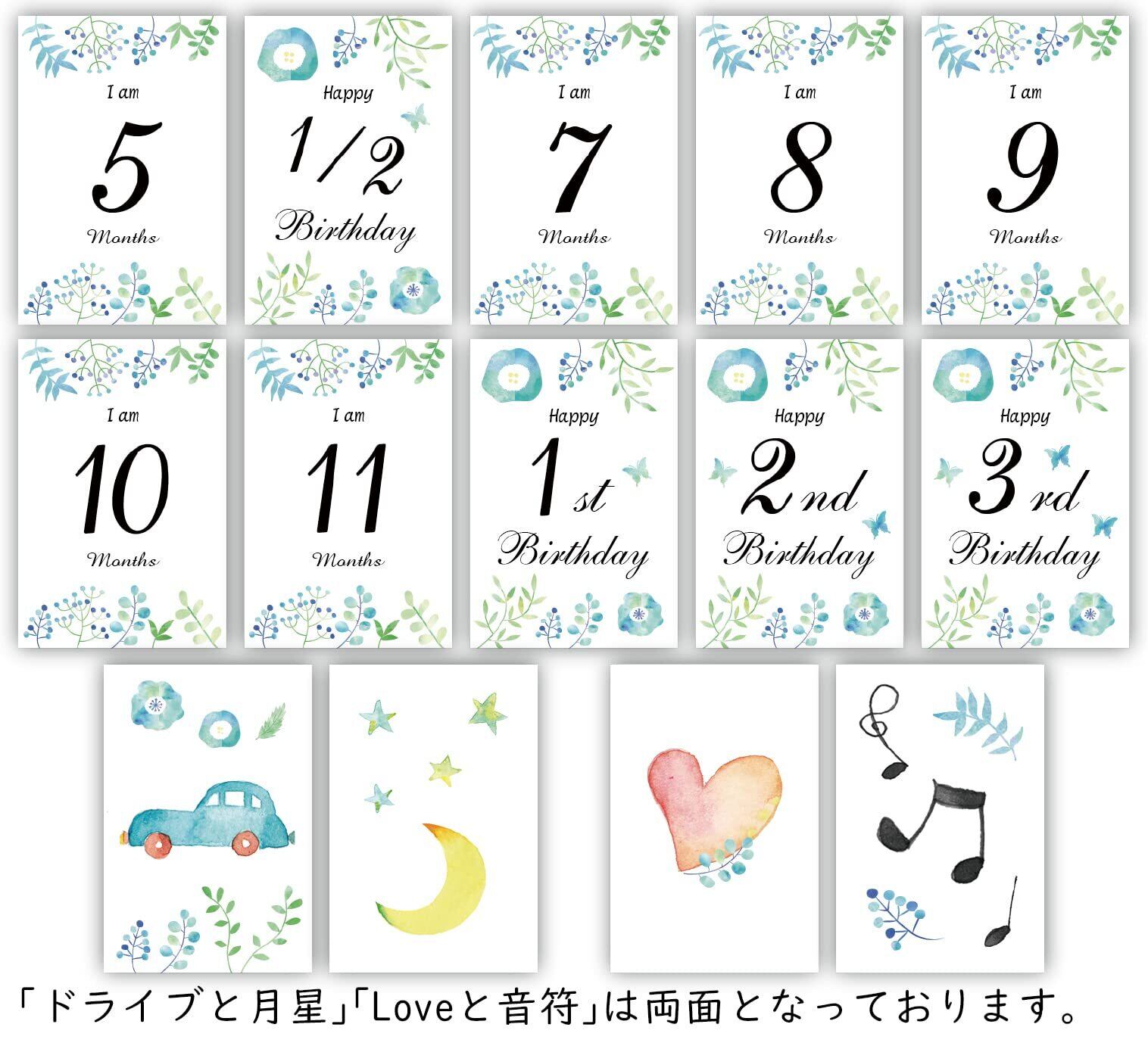 マンスリーカード ベビー 22枚セット(裏面にメッセージが書き込める仕様) マンスリーフォト 月齢フォト 月齢カード ノートライフ 日本製 (ボタニカル)