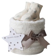 オーガニックコットン おむつケーキ 今治タオル 出産祝い 1段 男の子 女の子 ギフトセット ダイパーケーキ ベビー 日本製 オーガニック ソックス おむつケーキ研究所 ナチュラルムーニー オーガニックコットン テープタイプSサイズ