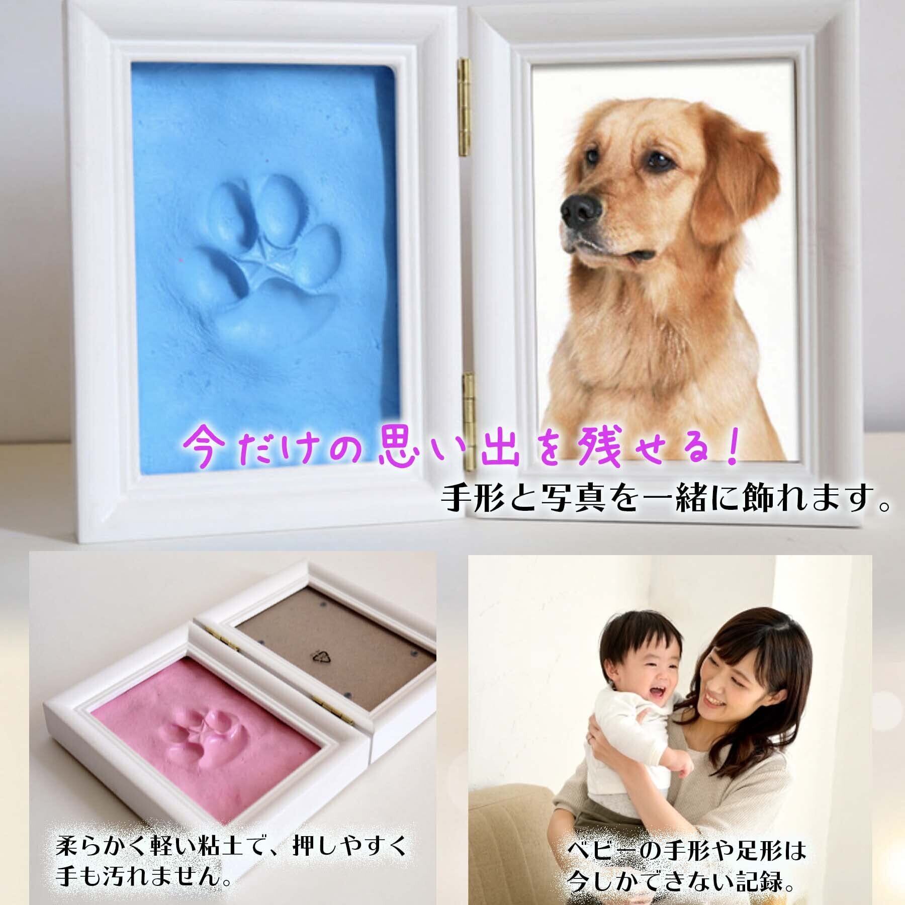 (エスネット) ペット 赤ちゃん メモリアル フォト フレーム 写真 立て 幅 23cm 高さ 15cm 手形 足型 粘土 付き 木製 仏具 犬 ホワイト