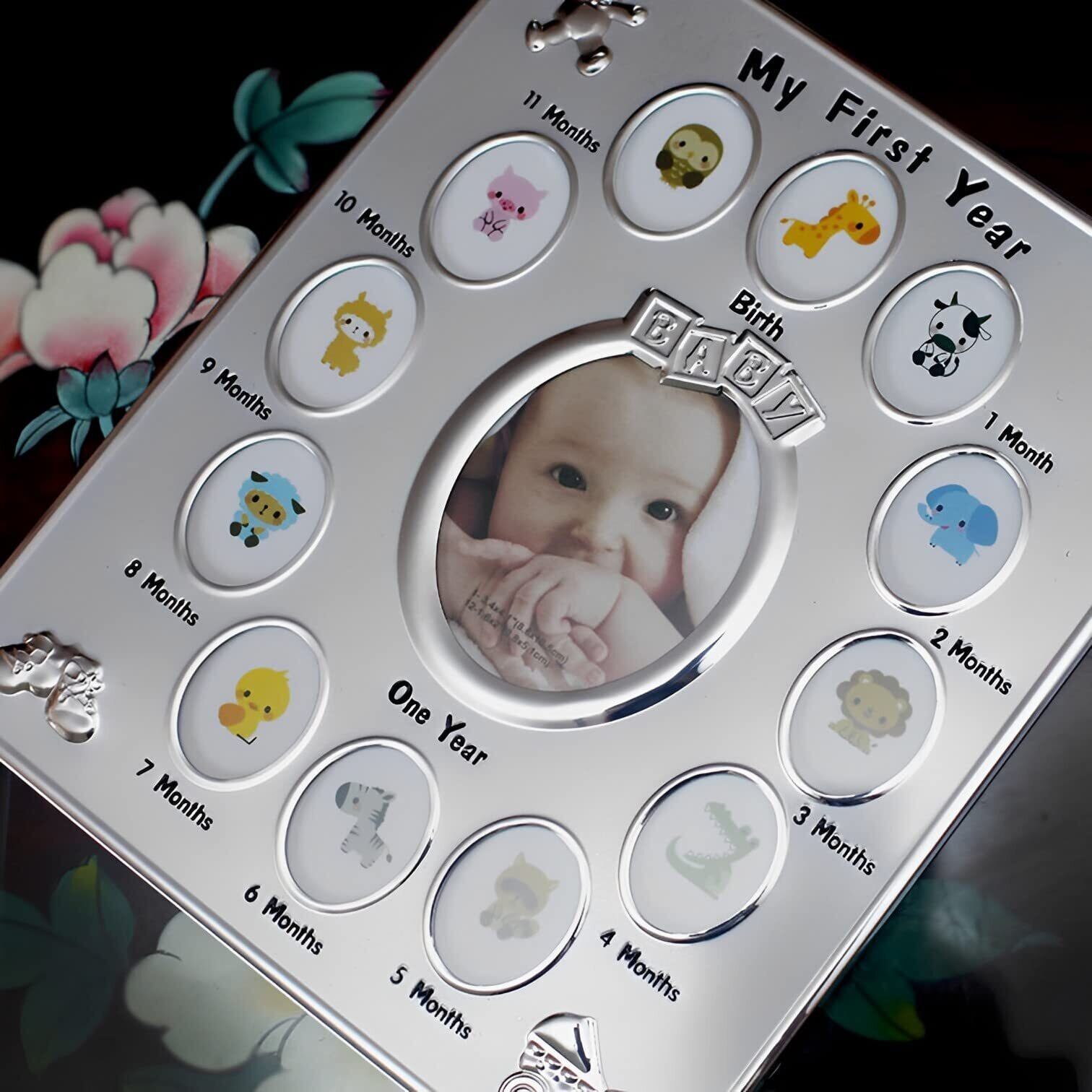 ベビーフォトフレーム(卓上・壁掛けどちらもOK) 生後12カ月の赤ちゃんの成長記録を一つのフォトフレームで飾れ事ができる写真立てです 生まれてから1歳になるまで、赤ちゃんの成長が一度に見られるので、成長記録や、インテリアとしてもお使い頂けます。 また出産祝いのプレゼンとにも大変喜ばれる商品です男の子、女の子ともにギフトとして大変喜ばれるプレゼントで、新米パパとママにもぴったりの思い出アイテムです。 生まれてから1歳になるまでお顔がどんどん変わっていく様子が一度に見られるので成長記録としても、さらにインテリアとしてもお使い頂けます。