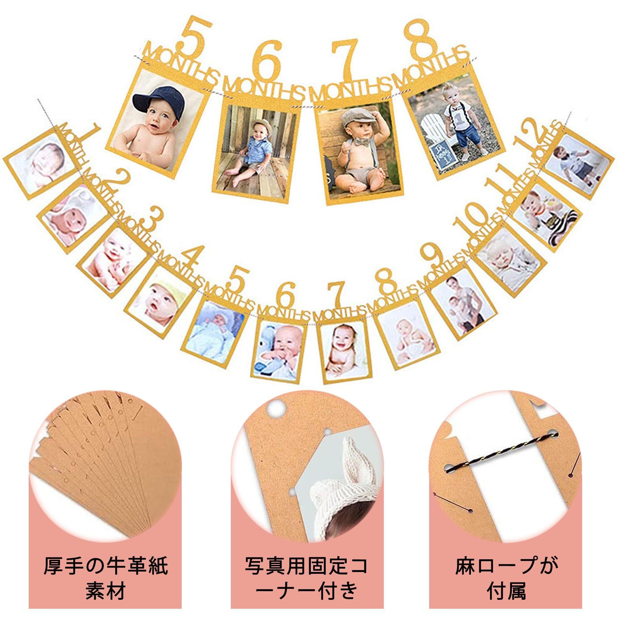 DEVENTORZ 誕生日 フォトガーランド フォトフレーム 飾り付け 12ヶ月 1歳記念 写真フレーム 壁掛け バースデーパーティー装飾 赤ちゃん 結婚式 記念日 お祝い用(桜金色)
