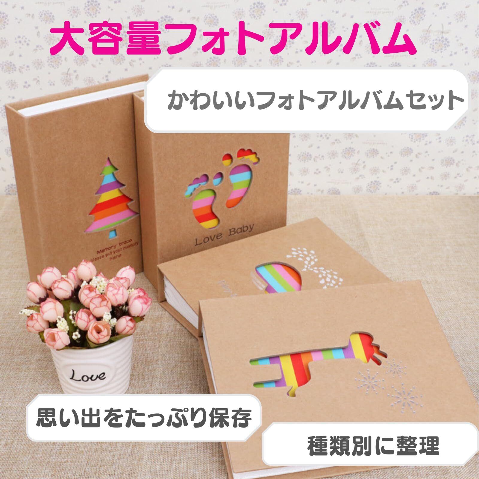 Akaaka アルバム 大容量 写真 アルバム 収納 見開き エコー写真 かわいい おしゃれ 出産祝い 結婚祝い 記念 ギフト 800枚 4冊セット L判