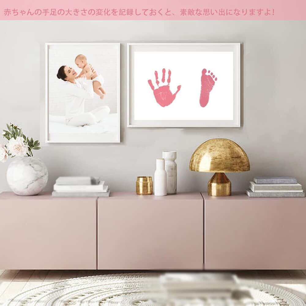 赤ちゃん 手形 足形キット 2セット ピンク 汚れないインク ベビーフレーム ギフト 誕生日 成長記録 出産祝い 1歳誕生日 猫犬手足型 記念品