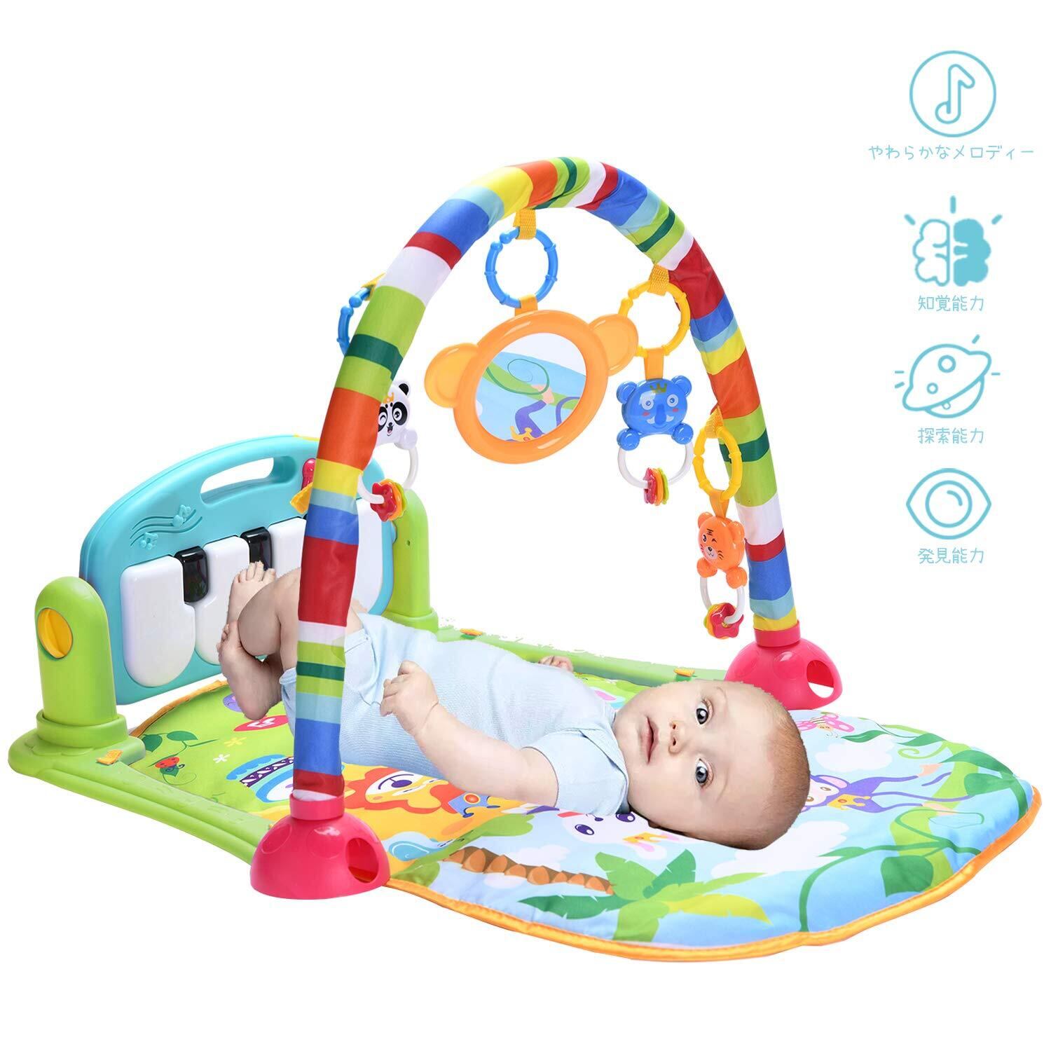 WYSWYG ベビージム ピアノプレイジム 新生児 おもちゃ ベビープレイジム ベビープレイマット ベビージムマット 乳幼児向け音楽活動センター 赤ちゃん バウンサー 洗濯可能 感覚刺激 出産祝いプレゼント(緑+青い)