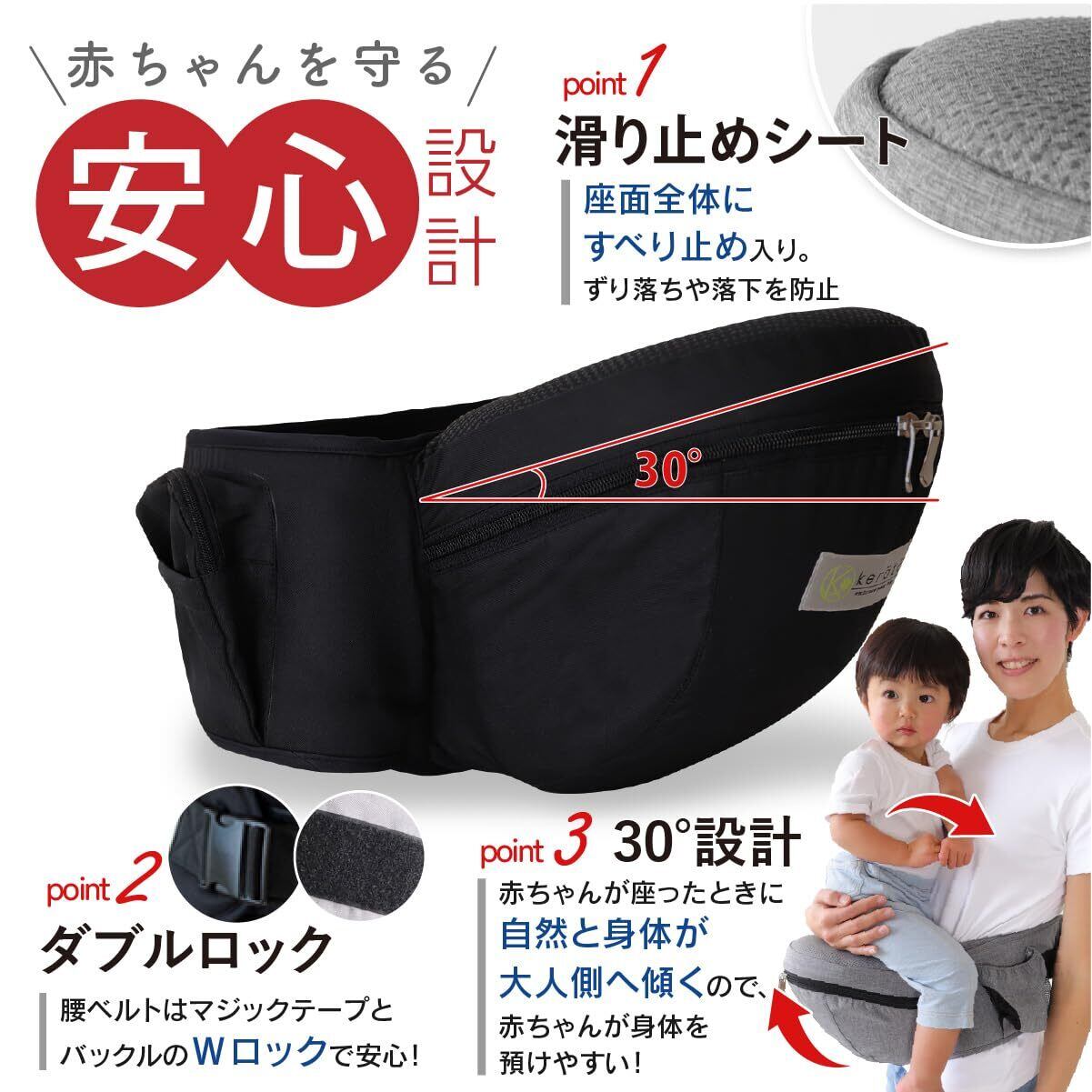 (ケラッタ) HipGo ヒップシート 抱っこ紐 軽量たったの375g ウエストキャリー 滑り止め付 ウエストポーチ (ブラック)