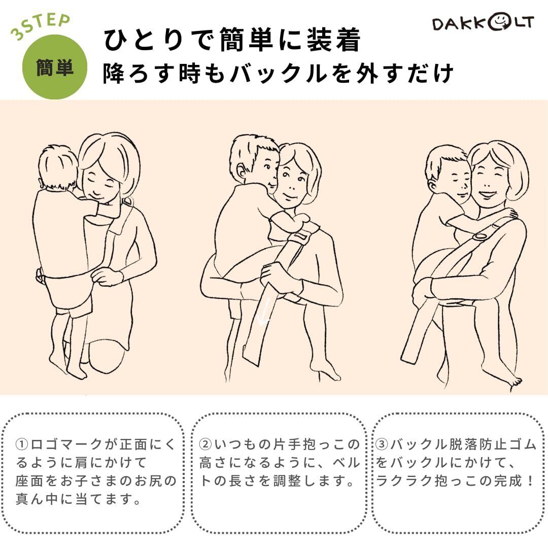 日本製 DAKKOLT(ダッコルト)ユニティ コーデュラオリーブ 正規品 超軽量160g 清潔 片手 セカンド抱っこ紐 簡単 誰でも 安心 抱っこベルト1歳〜4歳 軽量 コンパクト ヒップシート