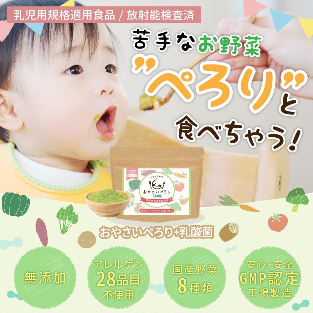 おやさいぺろり+乳酸菌 50g 粉末 パウダー 離乳食 偏食 野菜 不足 野菜嫌い 子ども 国産 無添加 乳児用 放射線検査済 乳児用規格適用食品