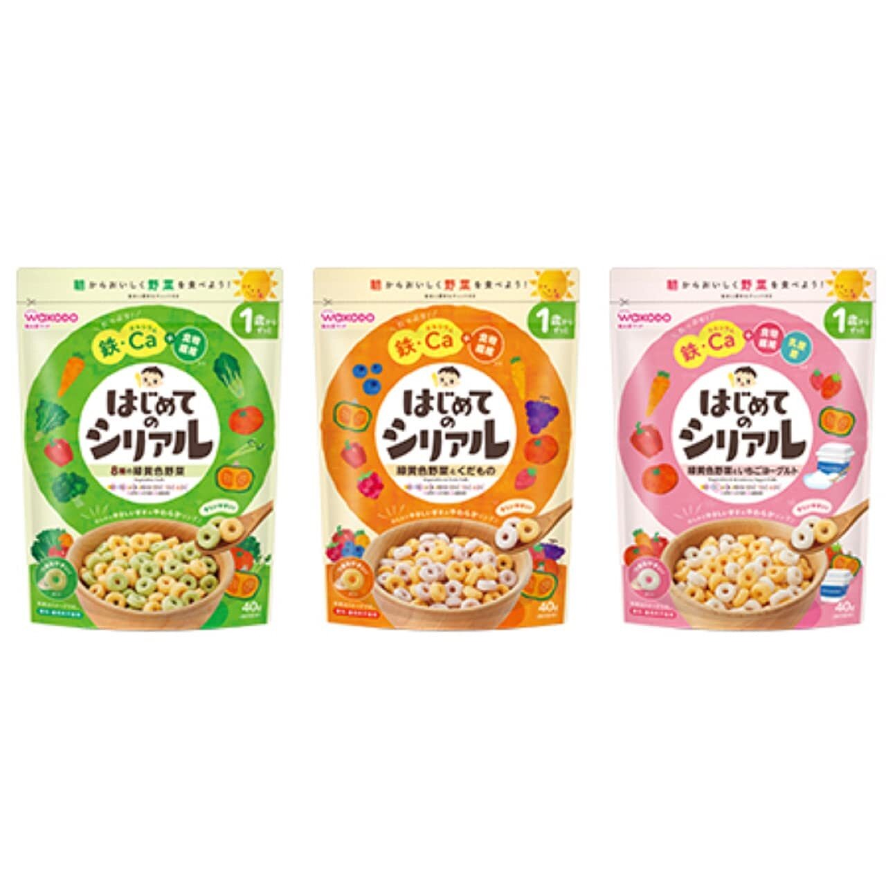 はじめてのシリアル 緑黄色野菜とくだもの 8種の緑黄色野菜 緑黄色野菜といちごヨーグルト 各1袋