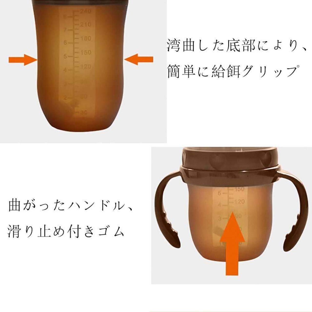 この哺乳瓶はナノシルバーシリコン哺乳瓶です重量 150ml:約140g 240ml:約172g。 【素材】食品グレードの液体シリカゲル(抗菌ナノシルバー素材入り)