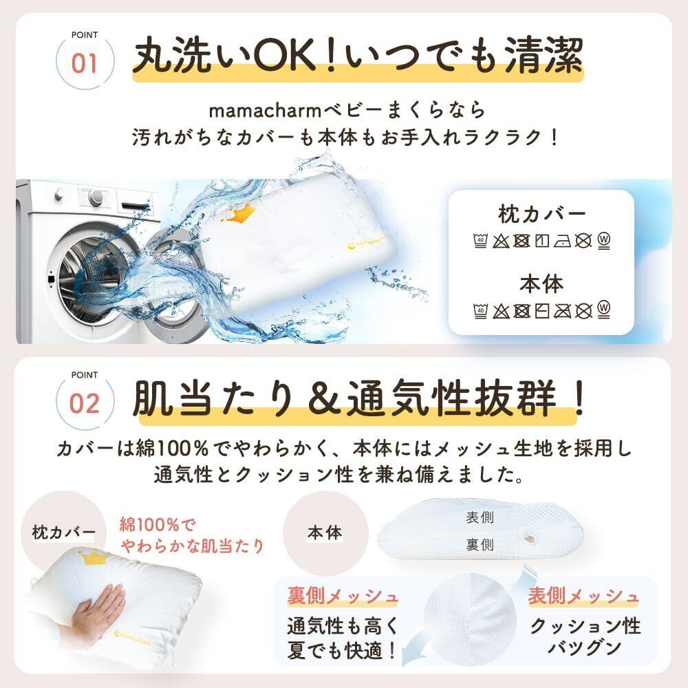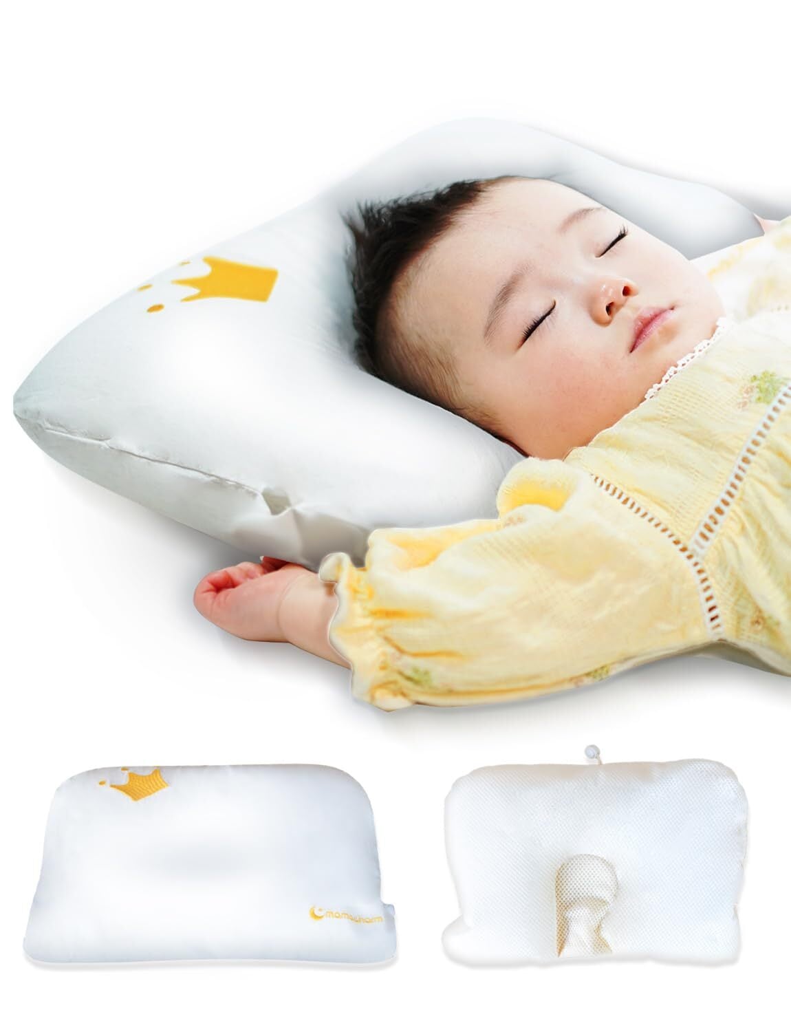 【mamacharm ベビーまくら】丸洗い可能!頭をまあるく包み込み、絶壁・向き癖・うつ伏せを改善。対象年齢0~5歳で長く使える高コスパのふんわりベビーまくら。