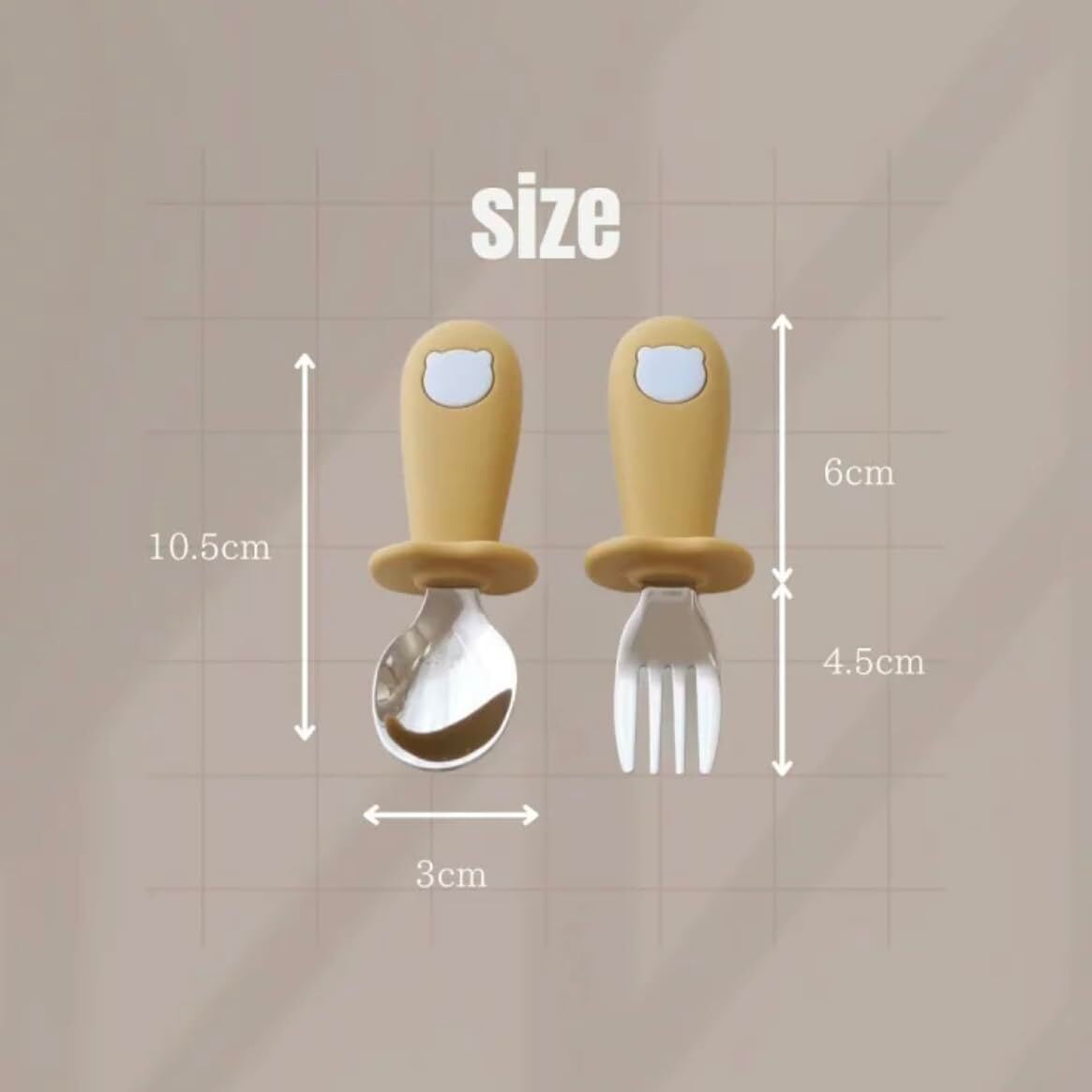 kawaii&børn 子供用 スプーン フォーク セット キッズカトラリー 離乳食 幼児食 持ち運び 握りやすい 出産祝い (ベージュ) SUS316L