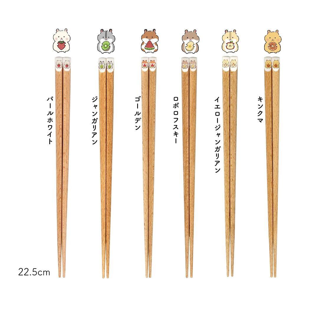 【ハムスターの可愛いイラスト入り】「hamumu」は、小さなハムスターたちが描かれた、見ているだけでほっこりするデザインのお箸。パールホワイト、ジャンガリアン、ゴールデン、ロボロフスキー、イエロージャンガリアン、キンクマの6種類のデザインで、お気に入りの子を選ぶ楽しさも。食卓がもっと楽しくなる一本です。